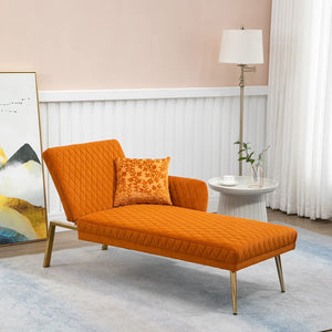 Velvet Chaise Lounge Indoor Chair with Pillow, Button Tufted Right Arm