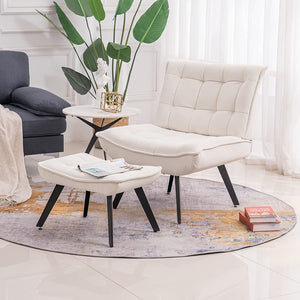 Velvet Tufted Upholstered Accent Chair with Ottoman Set