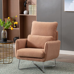 Modern Accent Chair, Teddy Velvet Armchair with Pillow