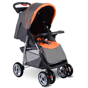 Baby Stroller, Foldable Infant Pushchair with 5-Point Safety Harness, Multi-Position Reclining Seat