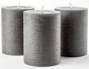 Set of 3 Charcoal Pillar Candles Dark Grey 3" x 4" Gray Rustic Unscented Dripless