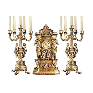 Chateau Chambord Clock and Candelabra Ensemble, 20 Inch, Complete Set of 3 Pcs