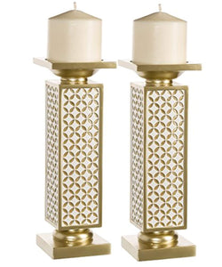Diamond Lattice Decorative Pillar Candle Holders, Set of 2(Gold & White)