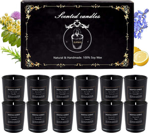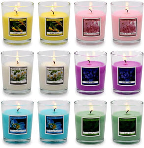 Set of 12 Scented Candles with 6 Fragrance, Natural Soy Wax