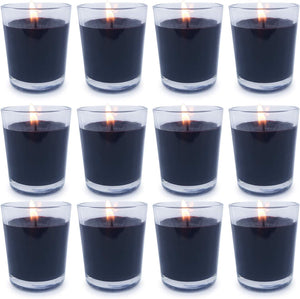 Set of 12 Black Votive Candles Clear Glass - Unscented