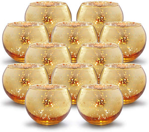 Round Gold Votive Candle Holders - Mercury Glass Tealight Set of 12