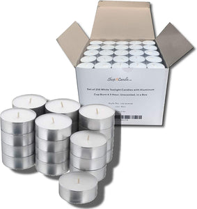 Bulk Set of 250 Tealight Candles in Metal Cups (White) 4.5 Hour Burn Time