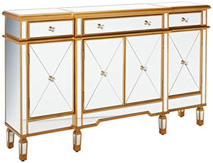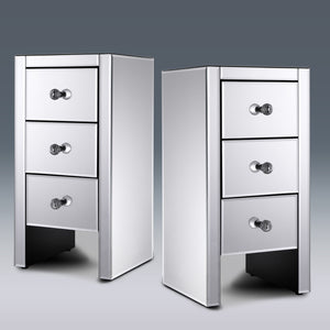 Set of 2 Mirrored Nightstand 3 Drawer Crystal Accent Silver Side Table