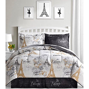 Eiffel Tower, Black, White & Gold Reversible Queen Comforter Set