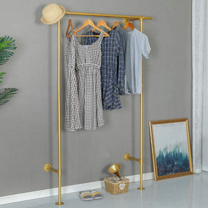 Industrial Pipe Clothing Vintage Rolling Rack On Wall (Gold)