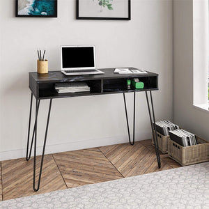 Hairpin Writing Desk with 2 Spacious Open Storage Cubbies, White