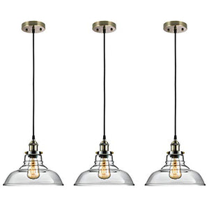 Industrial Hanging Lamp, Vintage Edison Glass Pendant Adjustable Hanging 3-PACK