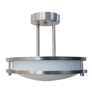 12" Semi-Flush Mount Ceiling Light, Brushed Nickel with Opal Glass Globe, 12"L x 12"W x 9.5"H