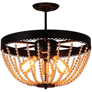 Rustic Black Metal and Wood Bead Decoration Semi Flush Mount Ceiling