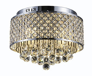 Flush Mount 4-Light Chrome Silver Crystal Chandelier