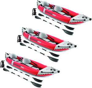 Inflatable 2 Person Vinyl Kayak with Oars & Pump, Red (3 Pack)