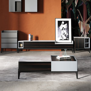 Marble & Wood TV Stand Cabinet Luxe Design