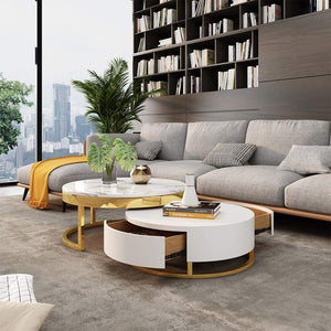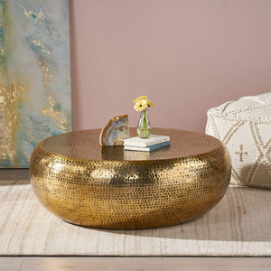 Modern Round Hammered Metal Antique Gold Coffee Table