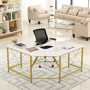 L-Shaped Desk 59" Computer Corner Desk(White Marble)