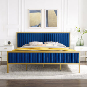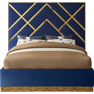 NAVY/GOLD Rogin Upholstered Flatform Bed