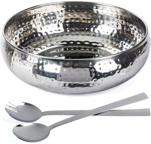 Salad Bowl and Serving Utensils - Hammered Detailing