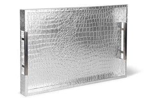 Silver Rectangle Glossy Alligator Croc Decorative Serving Tray