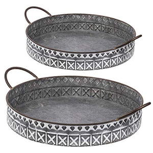 Round Grey Handles, Tray, Set of 2, Gray & White