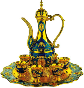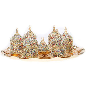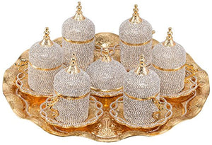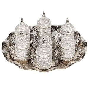 Vintage Turkish Coffee Pot Set for 6 including Tray with Swarovski Style Crystals