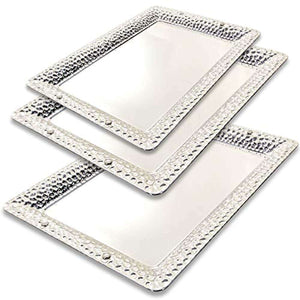 (Pack of 4) Rectangular Floral Engraved Chrome Mirror Serving Tray Victoria Design