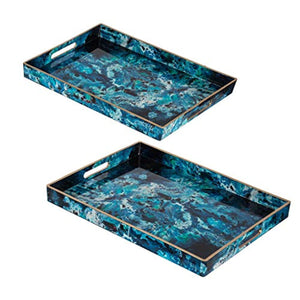 Abstract Blue Rectangular Tray, Set of 2, Multi-Color
