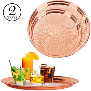 Copper Tray - 2 Pack - Large Tray 15 inch, Medium Tray 13 Inch