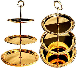 (Pack of 2) Three Tiered Iron Gold Serving Stand Serving Tray For Parties