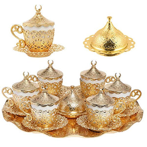 Alisveristime 27 Pc Turkish Greek Arabic Coffee Espresso Cup Saucer Set (Gelincik) Gold