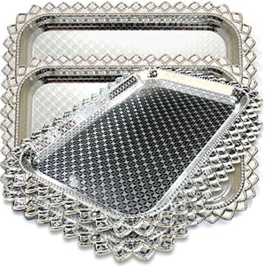 (Pack of 4) 1 Vintage Oblong Chrome Serving Tray Edge Floral