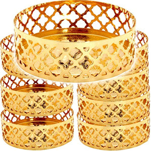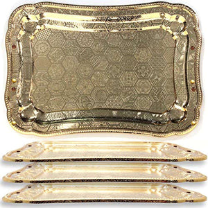 (Pack of 4) Sturdy Heavy Rectangular Iron Gold Plated Serving Tray Floral Edge