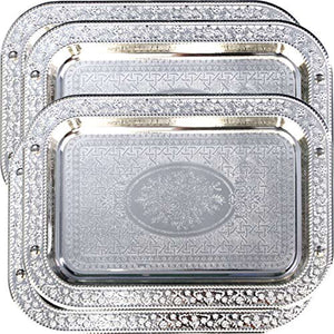 (Pack of 3) Three Sizes - Rectangular Chrome Plated Serving Tray E