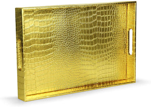 Beautiful Modern Elegant Gold 18"x12" Rectangle Glossy Alligator Decorative Serving Tray