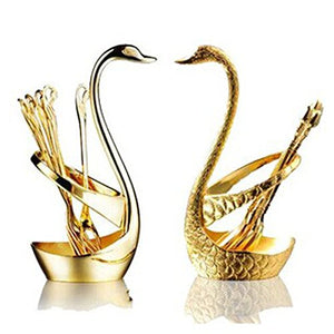 Luxury Swan Forks and Spoons Set Serving Spoons Forks 14 pcs Stainless Steel- Golden