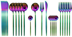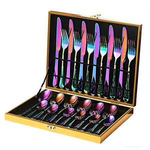 24-Piece Rainbow Color Flatware Set, Stainless Steel Titanium Set Service for 6