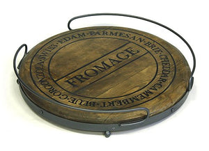 19" RoundAntique Style Artisan Wood Platform Cheese Cutting/Serving Board