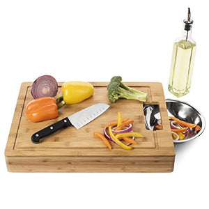 Large Bamboo Cutting Board with Stainless Steel Bowls and Juice Groove