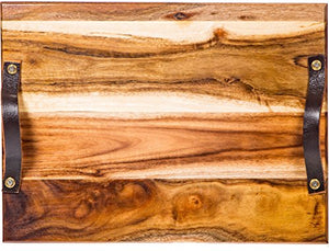 Acacia Cheese/Cutting Board Block 17" X 11" X 1" - With Leather Handles