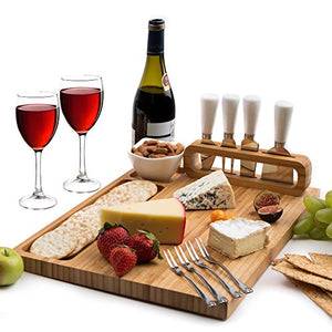 Bamboo Cheese Board with Cutlery Set, XL Larger and Thicker Platter with Classy Stainless Steel Knives
