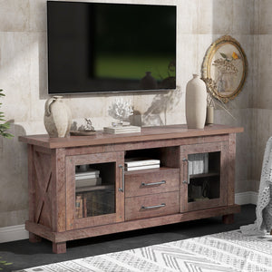 TV Stand for TVs up to 60 , TV Cabinet with 2 Drawer, Brown