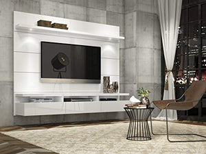 Theater Panel 2.2 Collection TV Stand with Drawers Floating Wall Theater Entertainment Center, 85.62" L x 16.73" D x 67.24" H, White