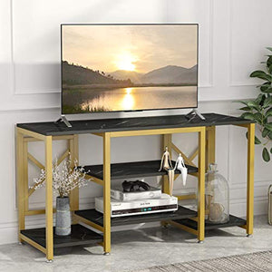 Gold TV Stand, Modern Entertainment Center Media Stand, 5 Shelf