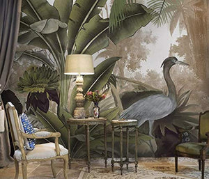 Forest Wallpaper Stork Drawing Wall Mural Banana Leaf Wall Print Natural Home