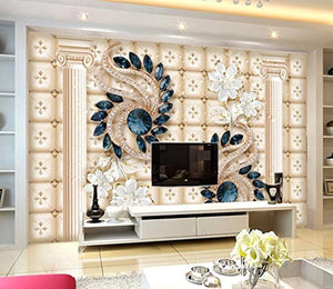 Jewelry Flower Wall Mural Navy Blue Diamond Wall Print Luxury Home Decor