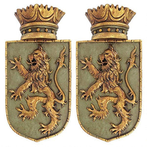 Medieval Rampant Lion Crest Medieval Decor Wall Sculpture - Set of Two, 14 Inch