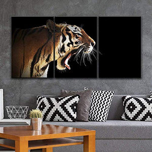 3 Panel Canvas Wall Art - A Tiger on Black Background - Giclee Print Gallery Wrap Ready to Hang